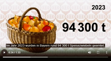 In Deutschland werden im Jahr 2023 rund 666 300 t Speisezwiebeln geerntet, welche auf rund 15 100 ha angebaut werden. Bayerns Anteil an der gesamten Anbaufläche liegt somit bei 17,9 Prozent (rund 2 700 ha), der Anteil an der Ernte indes bei rund 14,2 Prozent (94 300 t). Das bedeutet: Jede siebte deutsche Speisezwiebel wird in Bayern geerntet.