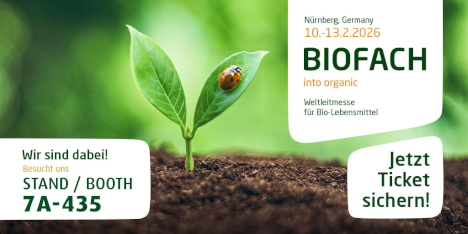 „Besuchen Sie uns am Stand (7A – 435) und entdecken Sie, wie wir gemeinsam den Bio-Gedanken stärken und weiterentwickeln – auf der Basis unserer Wurzeln, im respektvollen Umgang mit Mensch und Natur und mit einem klaren Blick in die Zukunft.“