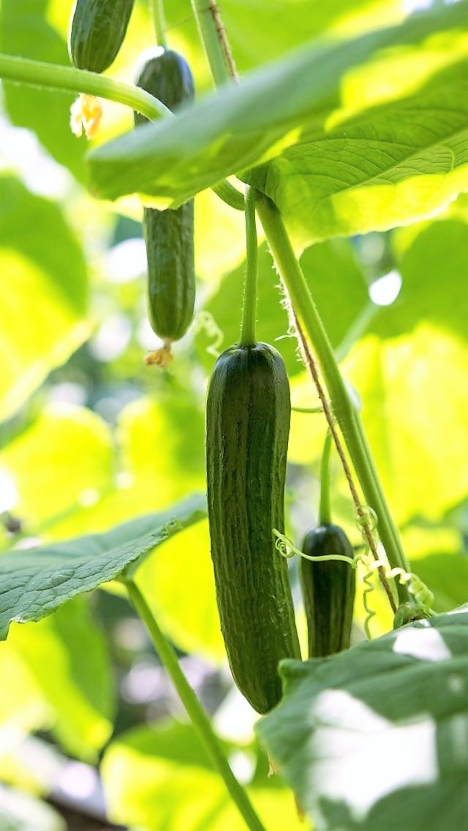 Bio-Minigurken im letzten Sonnenschein des Jahres. (Foto © Bio.Fru.Pro)