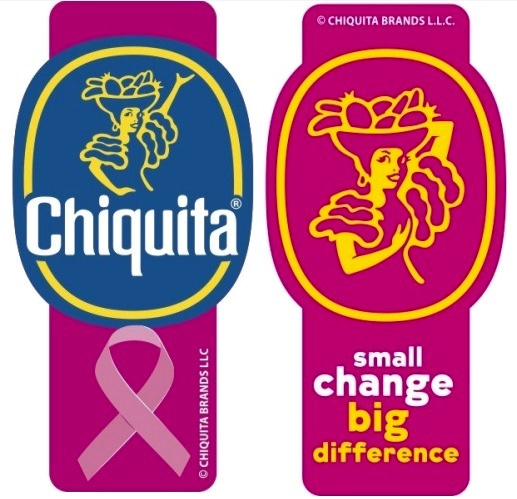 Zwei Sonder-Sticker sind das visuelle Ausrufezeichen im Supermarktregal und in der Obstschüssel: Miss Chiquita als gutes Beispiel bei der Selbstabtastung als komplett pinker Sticker und der bekannte Blue Sticker mit pinker Banderole samt Pink Ribbon.