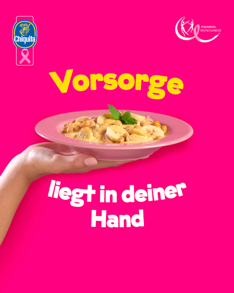 Im weltweiten Kampf gegen Brustkrebs sind alle gefordert und Miss Chiquita geht diesen Oktober, dem Breast Cancer Awareness Monat, wieder voran. Seit mittlerweile neun Jahren fördert Chiquita das Bewusstsein für Brustkrebs, gesunde Ernährung und gemeinschaftliches Engagement der Gemeinschaft in Zusammenarbeit mit Pink Ribbon Deutschland.
