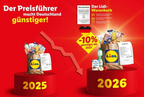 „In der aktuellen Diskussion um die Lebenshaltungskosten setzt Lidl auf Fakten: Der Lidl-Warenkorb mit wesentlichen Grundnahrungsmitteln belegt, dass der tägliche Einkauf bei Lidl in 2026 sogar noch günstiger als im Vorjahr ist.“
