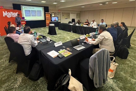 Laut César Favero, Manager für Industriebeziehungen beim National Mango Board, „stellte jedes Land während des Workshops einen aktuellen Bericht über die derzeitige Lage der Mangoindustrie in seinem Land und die Herausforderungen für die Zukunft vor. Es wurden strategische Themen diskutiert, wie der Einsatz von Technologien zur Überwachung und Schätzung der Erntemengen sowie vorrangige Bereiche der Feldforschung, immer mit dem Ziel, Verbesserungsmöglichkeiten in jeder Exportregion zu identifizieren.“