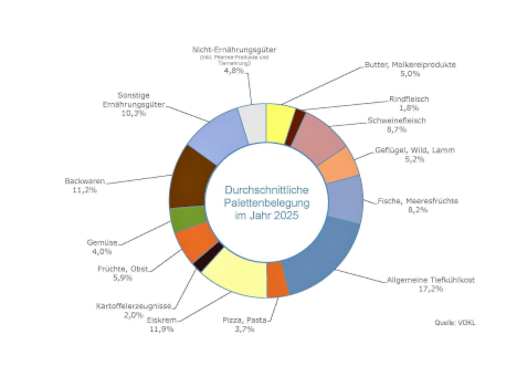 Die durchschnittliche Palettenbelegung nach Produktgruppen in 2025 (in %). (Infografik © VDKL)