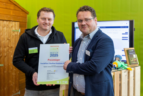 Die expoDirekt-Innovationspreise erhielten Frachtpilot aus Münster in Kooperation mit FlexFleet Solutions für den digitalen Leitstand für Ernte & Verkaufsstände sowie den NonStop Shop aus Meppen für die geeichte Waage im Verkaufsautomaten für die grammgenaue Abrechnung.