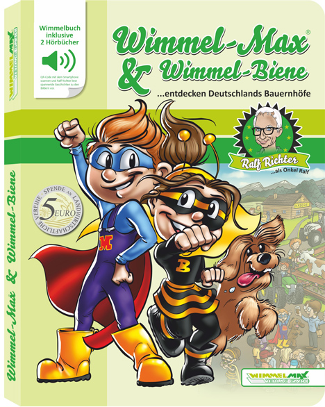 Ob zur Maisernte, im Schweinestall oder beim Sammeln von Hühnereiern: Das Bilderbuch "Wimmel-Max und Wimmel-Biene" nimmt Kinder und Erwachsene mit auf eine Reise durch die moderne Landwirtschaft in Deutschland.