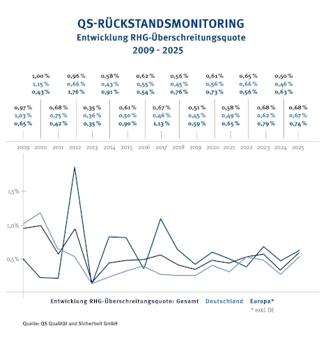 • Seit 2018 liegt die Quote der Rückstandshöchstgehalts-Überschreitungen (RHG) im QS-System unter 1 Prozent