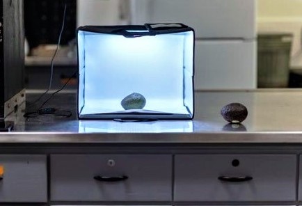 Avocado in einer Lichtbox, die für Forschungszwecke im Labor von Luyao Ma, Juniorprofessor an der Oregon State University, verwendet wird. (Foto © Oregon State University / Brian Horne)