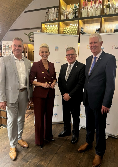 (v.l.n.r.): Johannes Bliestle (Vorsitzender BVEO), Silvia Breher (Parlamentarische Staatssekretärin BMLEH), Thomas Herkenrath (Präsident DKHV), Olaf Feuerborn (Vorsitzender UNIKA). (Foto © UNIKA)