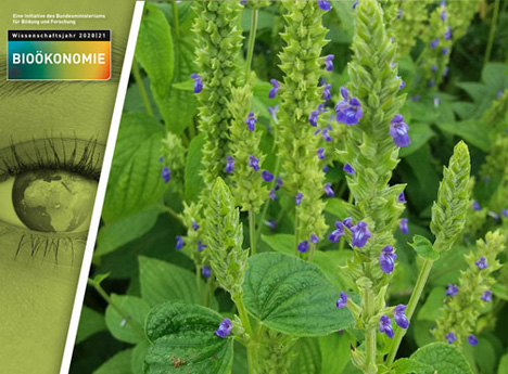 Die blau blühende Chia-Pflanze ist im Spätsommer auch eine ideale Bienenweide. Foto © Universität Hohenheim / Samantha Jo Grimes / Key Visual: Potente/unger+