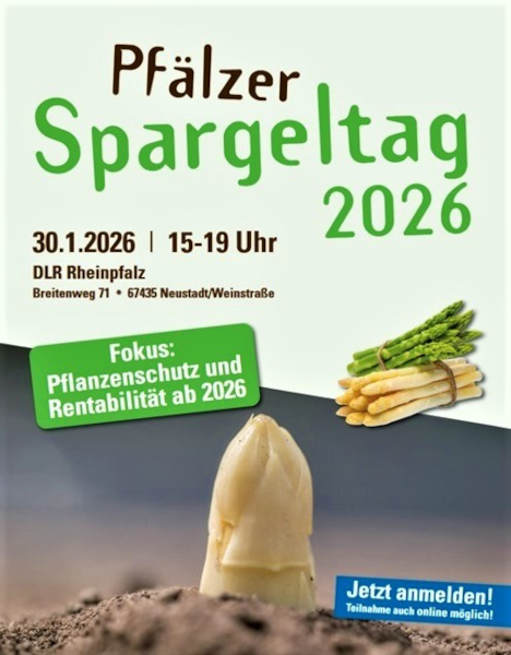 Der Verband Süddeutscher Spargel- und Erdbeeranbauer e.V. (VSSE) lädt zum Pfälzer Spargeltag 2026 ein, der am Freitag, 30. Januar 2026, beim DLR Rheinpfalz in Neustadt an der Weinstraße veranstaltet wird.