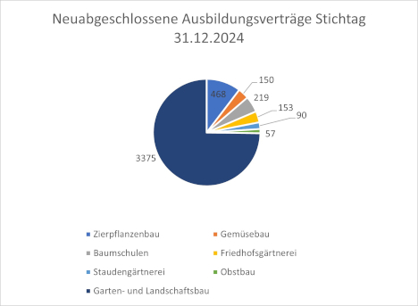Im Garten- und Landschaftsbau liegt der Rückgang mit 4,5 % (-153) und in den Baumschulen mit -1,4 % (-3) bei den Neuabschlüssen. Mit insgesamt 12.237 Azubis liegt die Marke der Gesamtzahlen der Auszubildenden 2024 allerdings wiederholt unter den Zahlen des Vorjahrs.