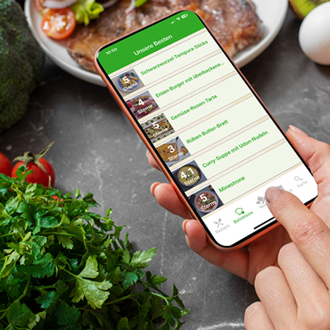 Neue und ausgefallene Rezepte rund um die Obst- und Gemüsearten, die hier in Deutschland gerade Saison haben. Und das nicht nur gratis sondern auch noch ganz ohne Werbung! Die „Deutschland – Mein Garten.“-Rezept-App für IOS und Android bietet einen Mehrwert, der blitzschnell – über App-, Google Playstore oder QR-Code – aufs Smartphone geladen ist. Und gleich nach dem Download ist man dann auch schon unterwegs auf der kulinarischen „User Journey“ durch den deutschen Obst- und Gemüseanbau! Erste Inspirationen gibt es gleich beim Öffnen der App, denn dort findet man passend zur Jahreszeit eine Auswahl an saisonalen Rezeptideen. Ist das Traumrezept noch nicht dabei, lassen sich über eine Suchfunktion Schlagworte eingeben, wie beispielsweise „Apfel“ – und schon werden passende Rezept-Vorschläge angezeigt. Ebenfalls auf der Startseite gibt es die Menüpunkte „Beliebteste Rezepte“, „News“ und „Kochbuch“. Dort findet man alle in der Community populären Rezepte, Wissenswertes über das Saison-Obst und -Gemüse, sowie die eigenen abgespeicherten Lieblingsrezepte. Und auch das Nachkochen ist kein Hexenwerk: In den Rezepten findet sich neben einer übersichtlichen Auflistung aller benötigten Zutaten, einem praktischen Portionsrechner, dem Schwierigkeitsgrad und dem benötigten Zeitfenster auch eine Schritt-für-Schritt-Anleitung für das ausgesuchte Gericht – und natürlich eine Bewertungsmöglichkeit für „Sterne“ würdige Rezepte!