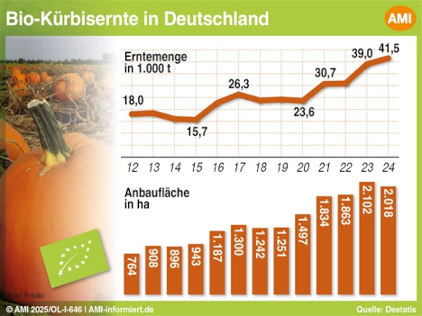 Die private Nachfrage nach Bio-Kürbissen in Deutschland ist nach dem Rückgang im Jahr 2023 im letzten Jahr, trotz weniger Werbeaktionen, wieder deutlich gestiegen. Der Aufwärtstrend hält auch in diesem Jahr an. Außerdem zeigt sich bei den Einkaufsstätten eine klare Tendenz hin zu den Discountern.