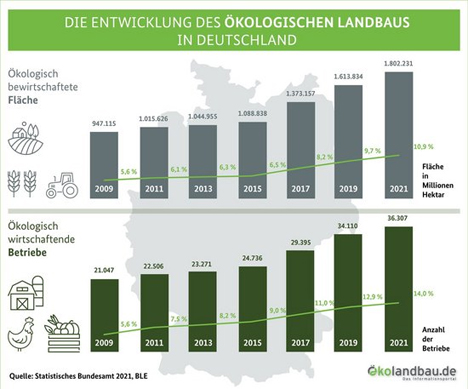 Das Bundesministerium für Ernährung und Landwirtschaft (BMEL) hat den Öko-Landbau als Leitbild für eine nachhaltige Landwirtschaft ausgerufen. Bis 2030 sollen 30 Prozent der landwirtschaftlich genutzten Fläche ökologisch bewirtschaftet werden. Damit dies gelingt, gibt es zahlreiche Maßnahmen.