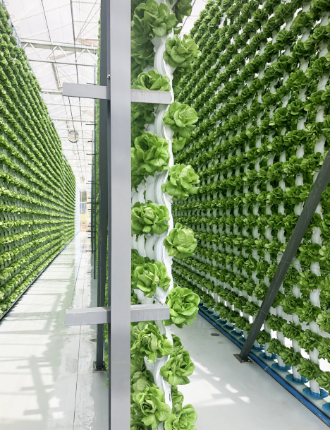 Es nutzt Sonnenlicht als primäre Lichtquelle und verzichtet vollständig auf künstliche Beleuchtung. Die Pflanzen wachsen in patentierten vertikalen Pflanzröhren, die eine hohe Flächeneffizienz und optimale Lichtverteilung ermöglichen.