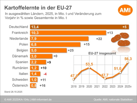 Auch wenn noch immer nicht alle wichtigen Anbauländer ihre amtlichen Daten zur Kartoffelernte 2025 vorgelegt haben, scheint längst klar, dass es für die kommenden Monaten überreichlich Kartoffeln gibt.
