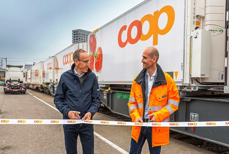 Damit verlagert Coop den Güterverkehr weiter konsequent von der Strasse auf die Schiene, reduziert CO₂e-Emissionen und entlastet den Verkehr.
