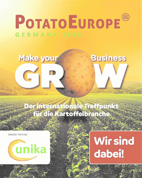 Die PotatoEurope 2026 steht für die UNIKA auch im Zeichen eines besonderen Jubiläums: 25 Jahre UNIKA. Getreu ihrem Motto, „gemeinsam stufenübergreifend Lösungen erarbeiten“, setzt sich die UNIKA seit einem Vierteljahrhundert für die Interessen der Kartoffelwirtschaft entlang der gesamten Wertschöpfungskette ein.